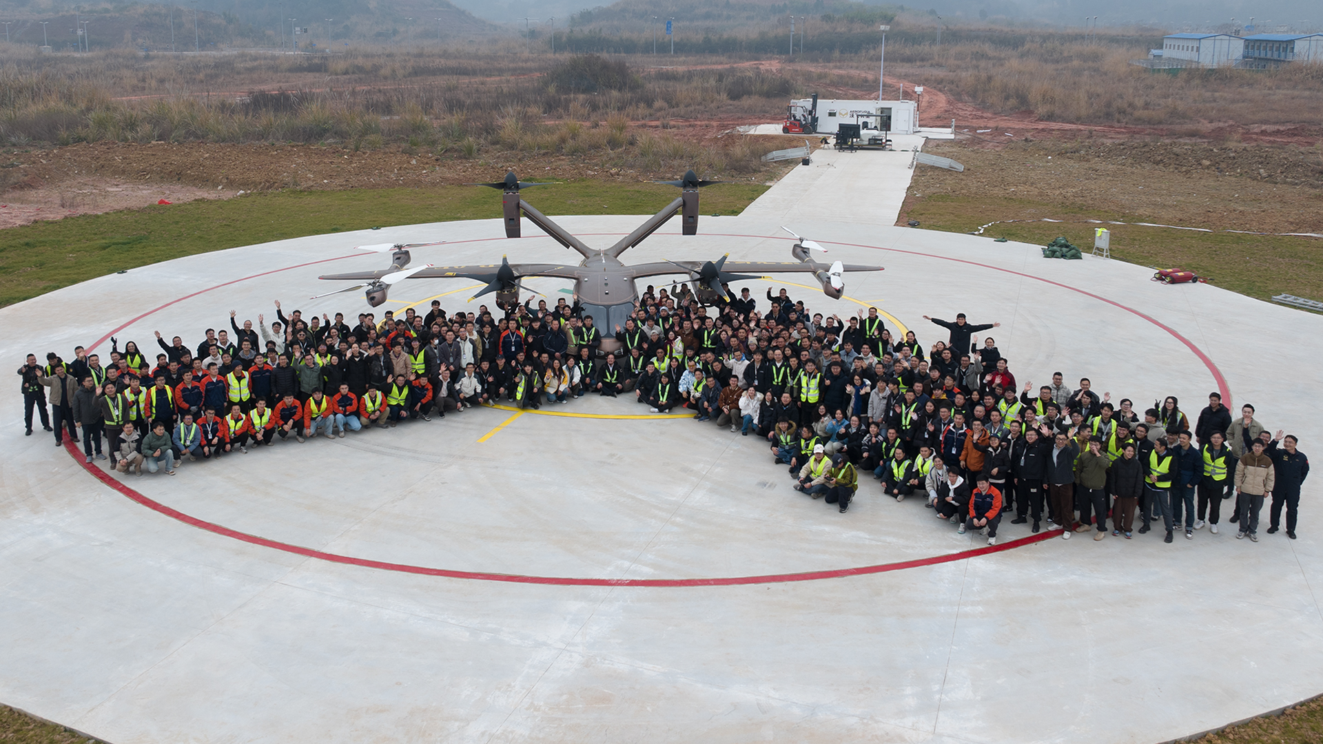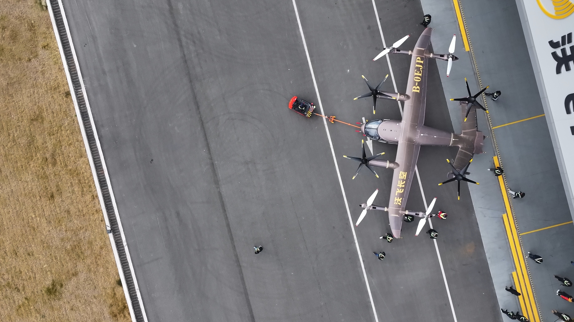 2024年6月,团队成功完成关键技术攻关,沃飞长空也成为“全球第二、国内首个”完成2.5吨级eVTOL“全尺寸、全重量、全剖面”倾转过渡试飞的主机厂。2025年9月,首款有人驾驶载客eVTOL量产机AE200-100成功下线,并于同年12月完成了首阶段有人驾驶试飞工作。